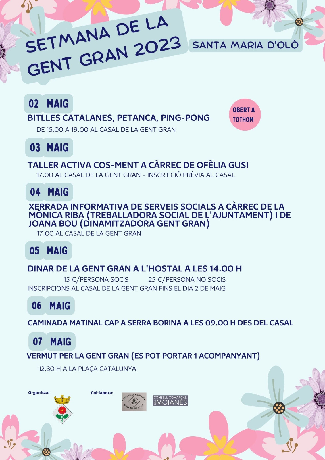 El casal de la gent gran acollirà la majoria d’activitats, demà Ofèlia Gusi farà un taller per activar cos i ment. Dijous a la tarda es farà una xerrada informativa per explicar els serveis socials que disposen els veïns d’Oló.